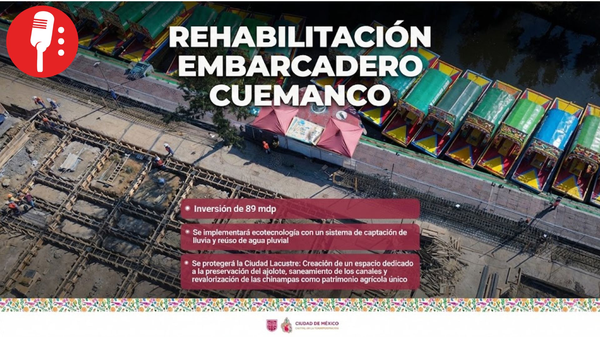 Este proyecto busca mejorar un sitio turístico, cultural y ambiental, preservando la historia lacustre, sus chinampas y el entorno natural. Las obras incluyen la instalación de equipo sostenible de madera, infraestructura verde, ecotecnologías para la captación, tratamiento y reutilización de agua pluvial, así como la prohibición de plásticos de un solo uso.
