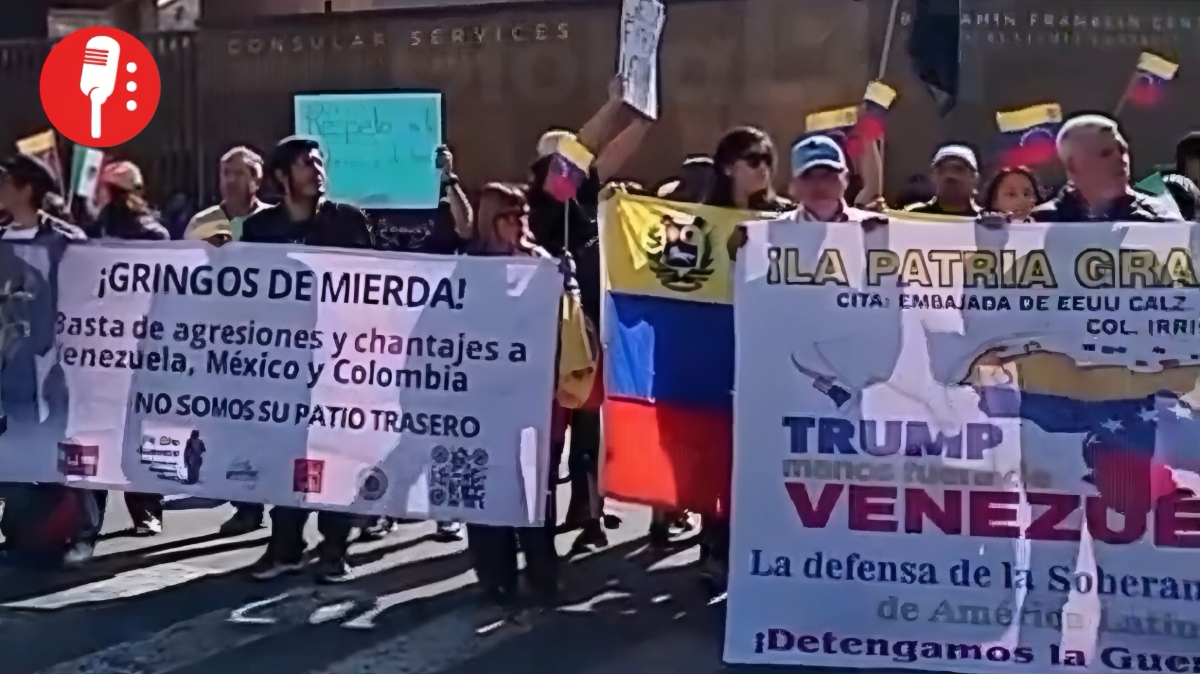 Un numeroso grupo de activistas se congregó esta mañana frente a la nueva embajada de Estados Unidos en la Ciudad de México. Su objetivo fue condenar la detención del presidente venezolano Nicolás Maduro y de su esposa Cilia Flores por parte de militares estadounidenses.