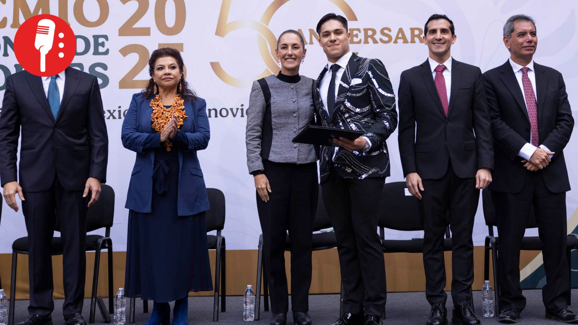 Cuauhtémoc, Ciudad de México, México, 28 de noviembre de 2025. La doctora Claudia Sheinbaum Pardo, presidenta Constitucional de los Estados Unidos Mexicanos entrega Premio Nacional de Deportes 2025 en su 50 Aniversario. La acompañan Luis Carlos López Valenzuela, Atleta galardonado del Premio Nacional de Deportes 2025 de la disciplina Para atletismo; María Lorena Ramírez Nahueachi, atleta galardonada del Premio Nacional de Deportes 2025 de la disciplina en atletismo ultra maratones; Andrea Maya Becerra Arizaga, atleta galardonada del Premio Nacional de Deportes 2025 de la disciplina en tiro con arco; Mario Delgado Carrillo, secretario de Educación Pública; Clara Brugada Molina, jefa de gobierno de la Ciudad de México; Rommel Pacheco Marrufo, director general de la Comisión Nacional de Cultura Física y Deporte; Edgar Amador Zamora, secretario de Hacienda y Crédito Publico; Ma Jin entrenadora disciplina clavado; Isaac del Toro Romero, atleta galardonado del Premio Nacional de Deportes 2025 de la disciplina en atletismo y Osiris Aneth Machado Plata, atleta del Premio Nacional de Deportes 2025 de la disciplina en Para atletismo. Foto: Gabriel Monroy / Presidencia