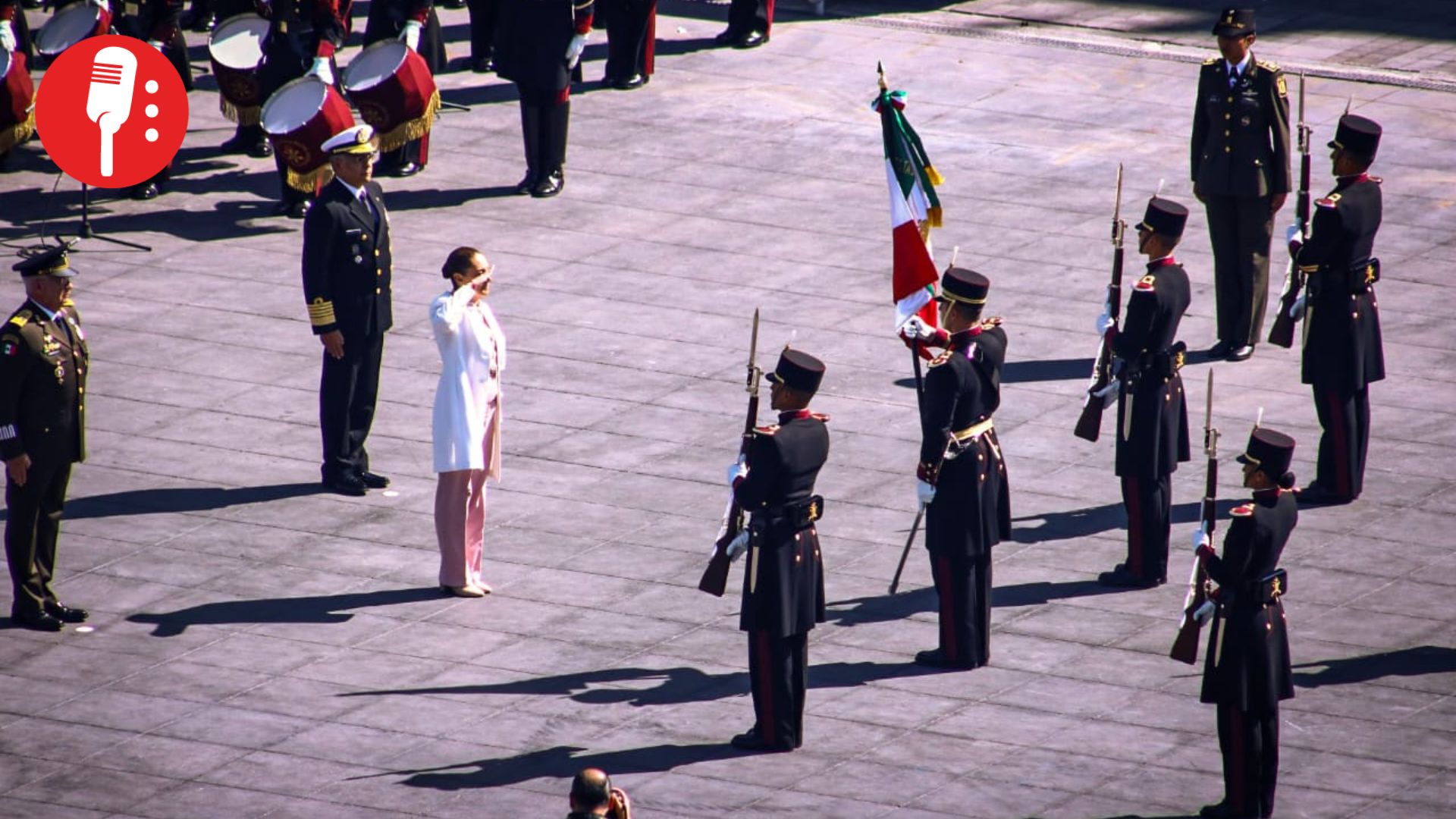 La ceremonia incluyó el pase de lista de honor, una salva de fusilería y la participación de cadetes del Heroico Colegio Militar, mientras estudiantes de educación básica presenciaron el acto y expresaron su entusiasmo ante la presencia presidencial.