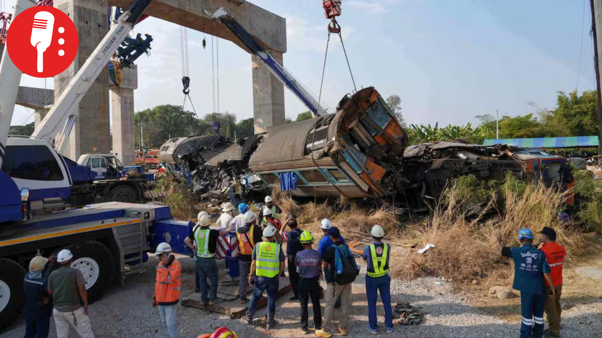 Una grúa de construcción colapsó sobre un tren de pasajeros cerca de Bangkok, provocando un descarrilamiento, un incendio y decenas de heridos.